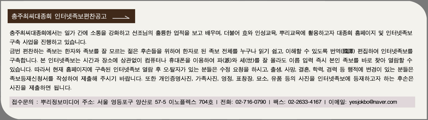 휘(諱) 최렴(崔濂) 六世 … 2025-12-15